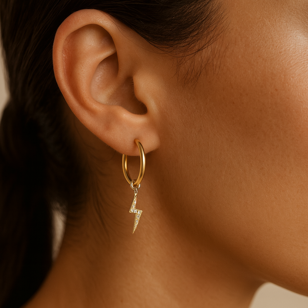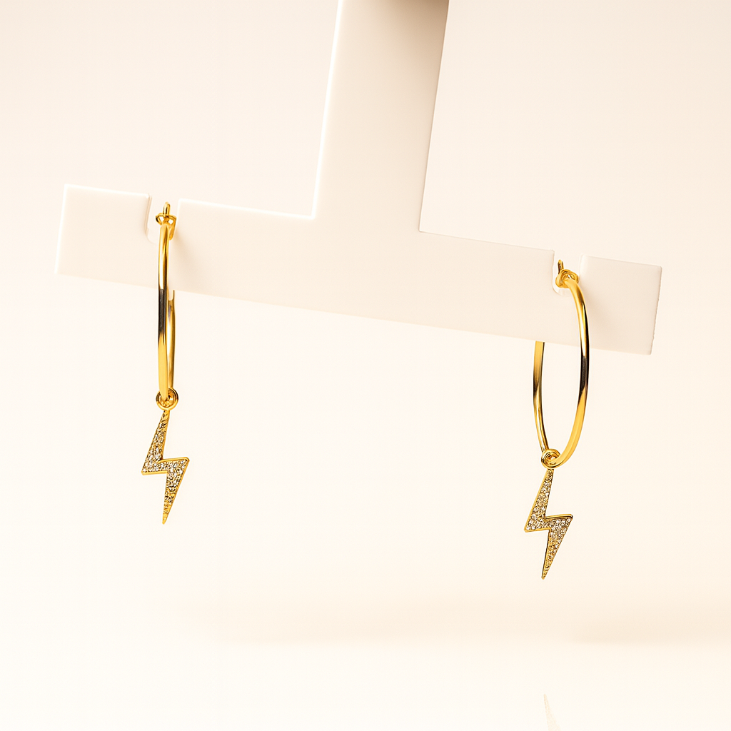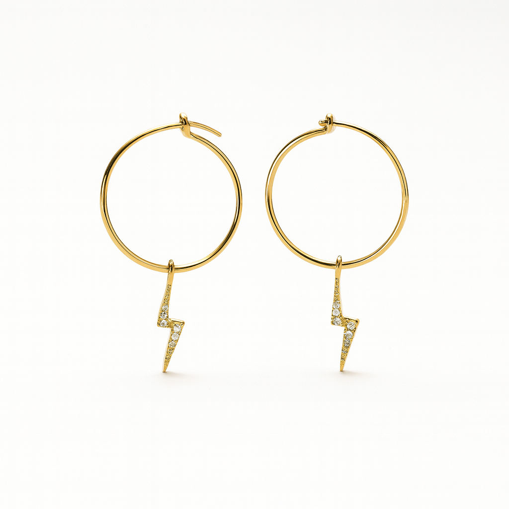 Make a bold statement with our "Electric Arc" hoops. Featuring dazzling pavé lightning bolt charms suspended from slender hoops, these earrings are crafted in durable GOLD VERMEIL. Essential edgy style.
