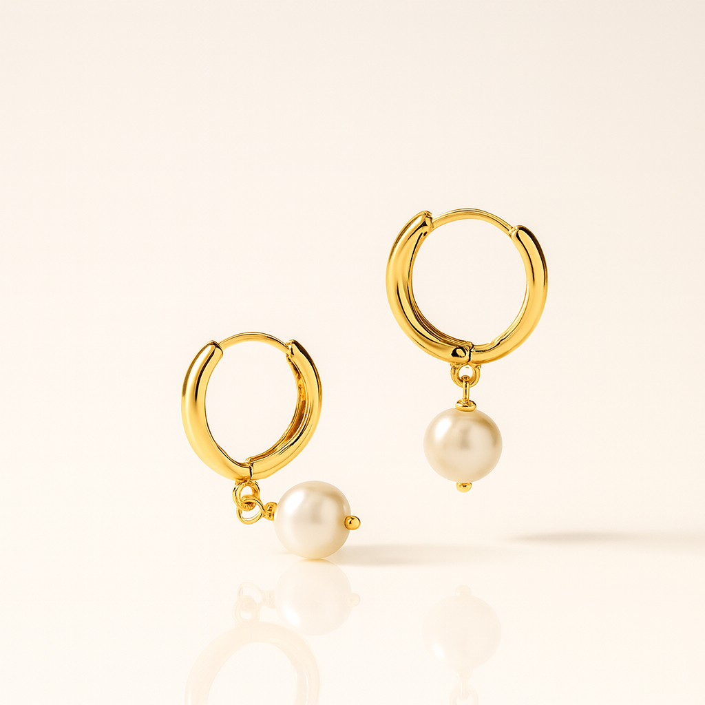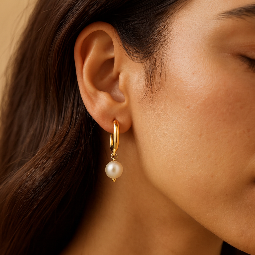 Adorn yourself with the "Gilded Luster" hoops. Featuring luminous pearl drops on thick GOLD VERMEIL huggies, these earrings blend classic elegance with modern wearability. A luxurious, timeless accessory.