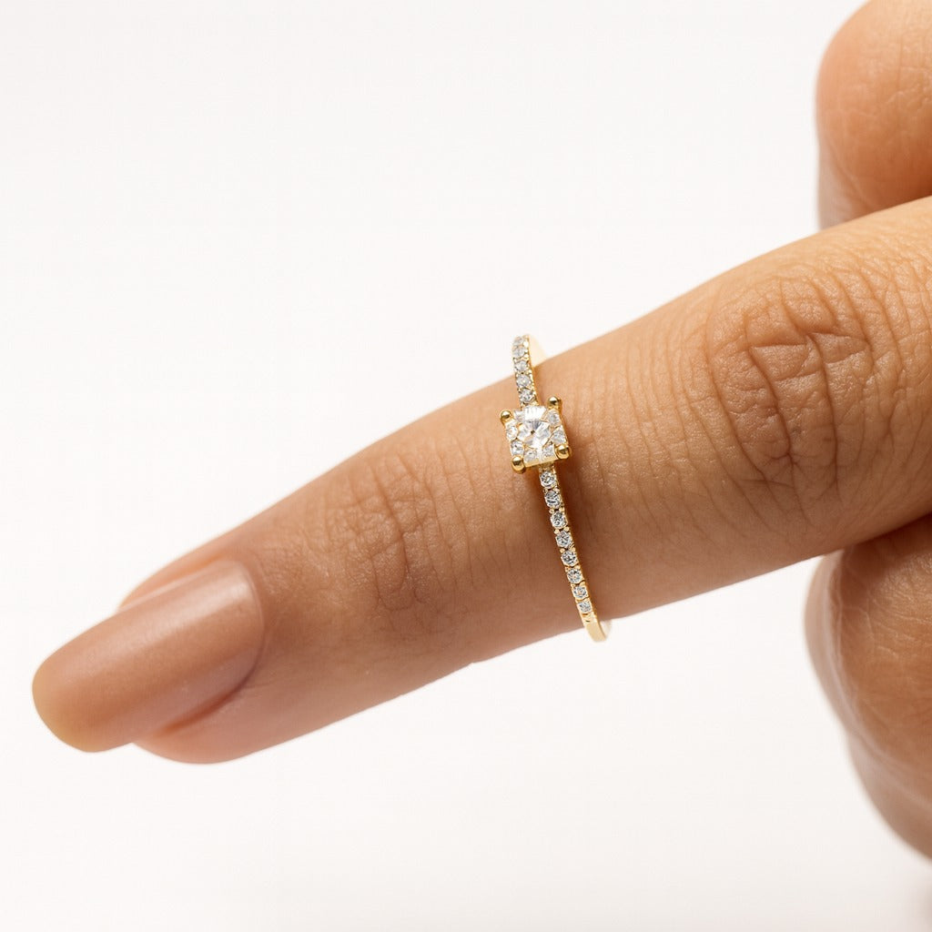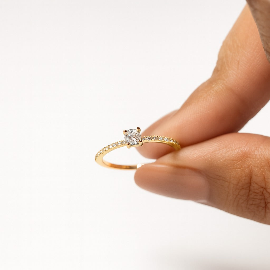 Elevate your everyday elegance with the Pia Spark ring—a stunning fusion of sophistication and radiance. This captivating piece showcases a brilliant square-cut gemstone as its centerpiece, beautifully complemented by delicate pavé detailing that catches light from every angle. Crafted in luxurious gold vermeil, it combines the richness of precious metal with lasting durability, making it an ideal choice for those who refuse to compromise on style or quality. Whether worn as a statement piece or layered with other favorites, the Pia Spark delivers timeless beauty that transitions seamlessly from day to night, ensuring you sparkle with confidence in every moment.